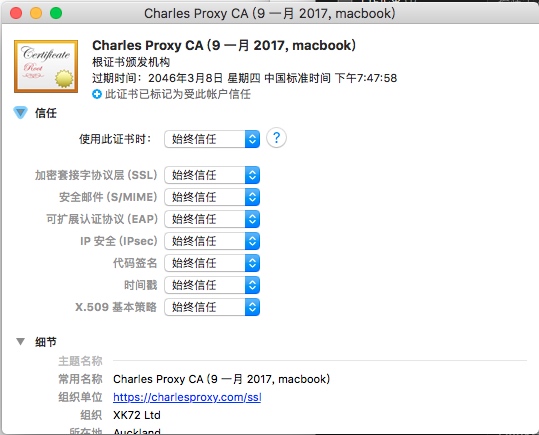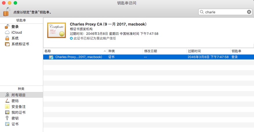 菜单栏->Help->SSL proxying->Install Charles Root Certificate