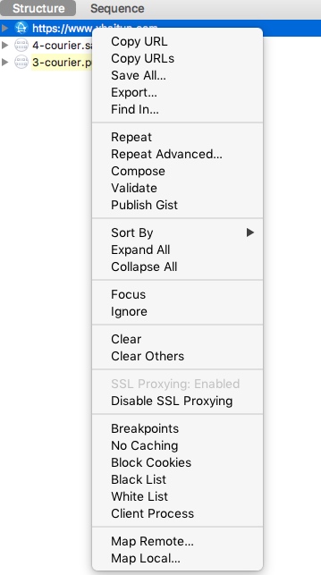 此时还是不能获取https数据,进入Charles进行SSL代理设置,右键选择要获取数据的链接,选择SSL Proxying:Enable打开,如下图: